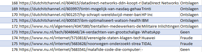 het maken van de dataset achter gekomen dat er niet veel nieuwsberichten waren waar